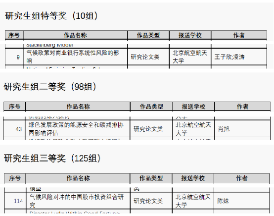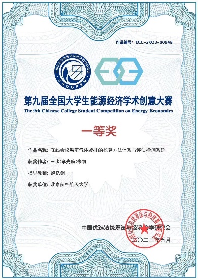 LLIG团队成员、北京亚洲成人在线一二三四五六区经济管理学院数量经济与商务统计系副教授刘炳越指导的LLIG团队硕士研究生王子欣和本科生凌涛的论文“气候政策对商业银行系统性风险的影响”荣获第九届全国大学生能源经济学术创意大赛研究生组特等奖。刘炳越副教授荣获优秀指导教师。上海交通大学黄震院士和中国高等教育学会副会长兼秘书长姜恩来教授为获得特等奖的同学颁发了证书。