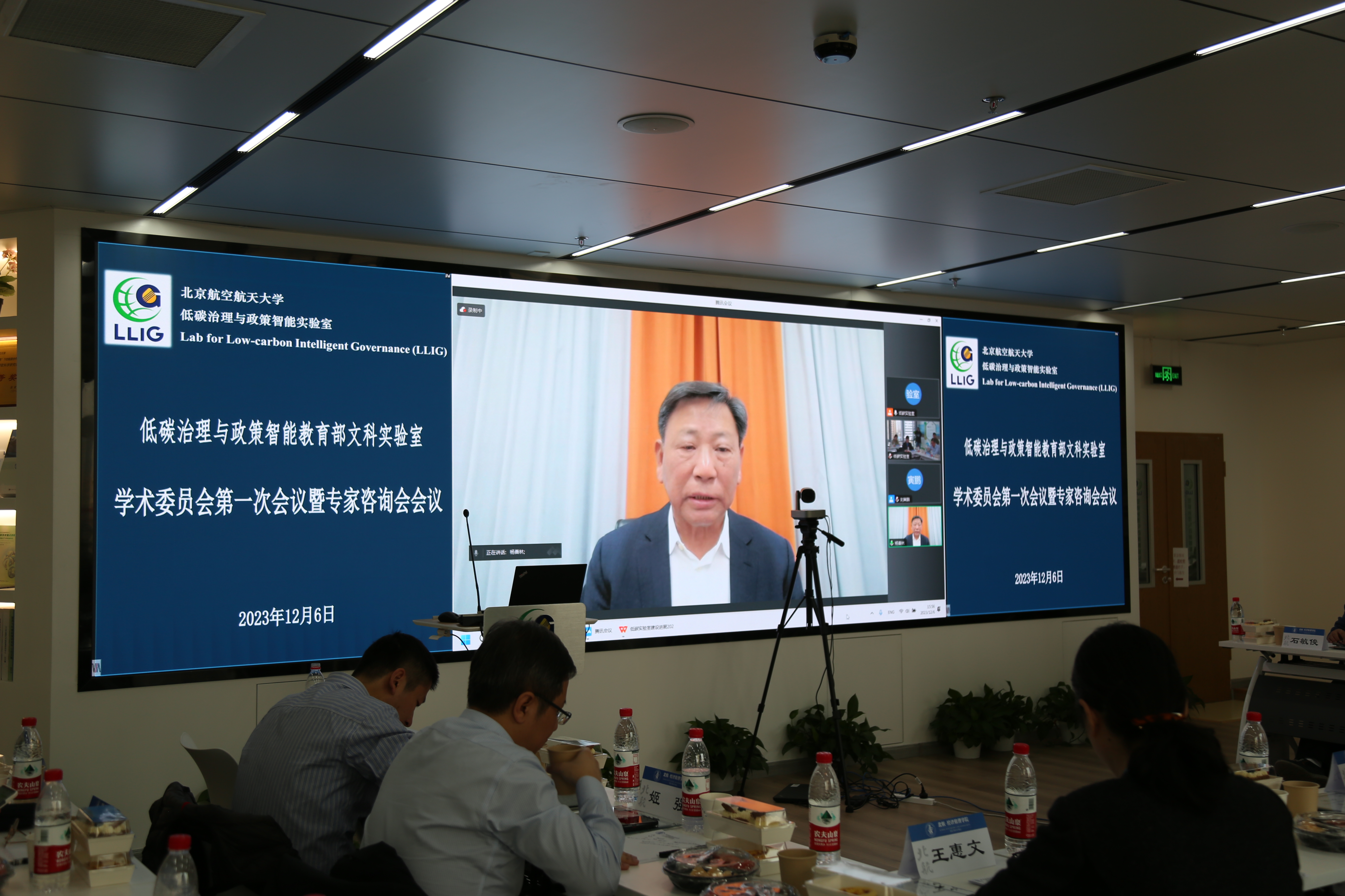 2023年12月6日,北京亚洲成人在线一二三四五六区低碳治理与政策智能实验室学术委员会第一次会议暨专家咨询会在北航新主楼召开。国家应对气候变化专家组名誉组长、科技部原副部长刘燕华研究员、中国工程院院士杨善林教授、清华大学赵罡教授、工信部节能与综合利用司原一级巡视员李力副会长等实验室专家委员会成员出席会议,学术委员会全体成员、管委会成员、实验室骨干成员等40余人参会,经管学院副院长、实验室副主任秦中峰教授主持了会议。
