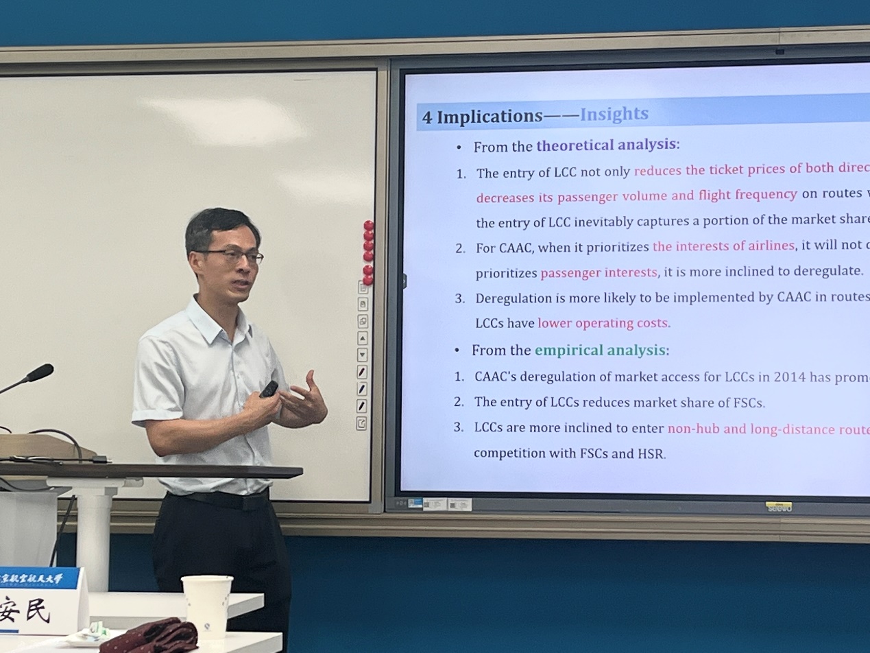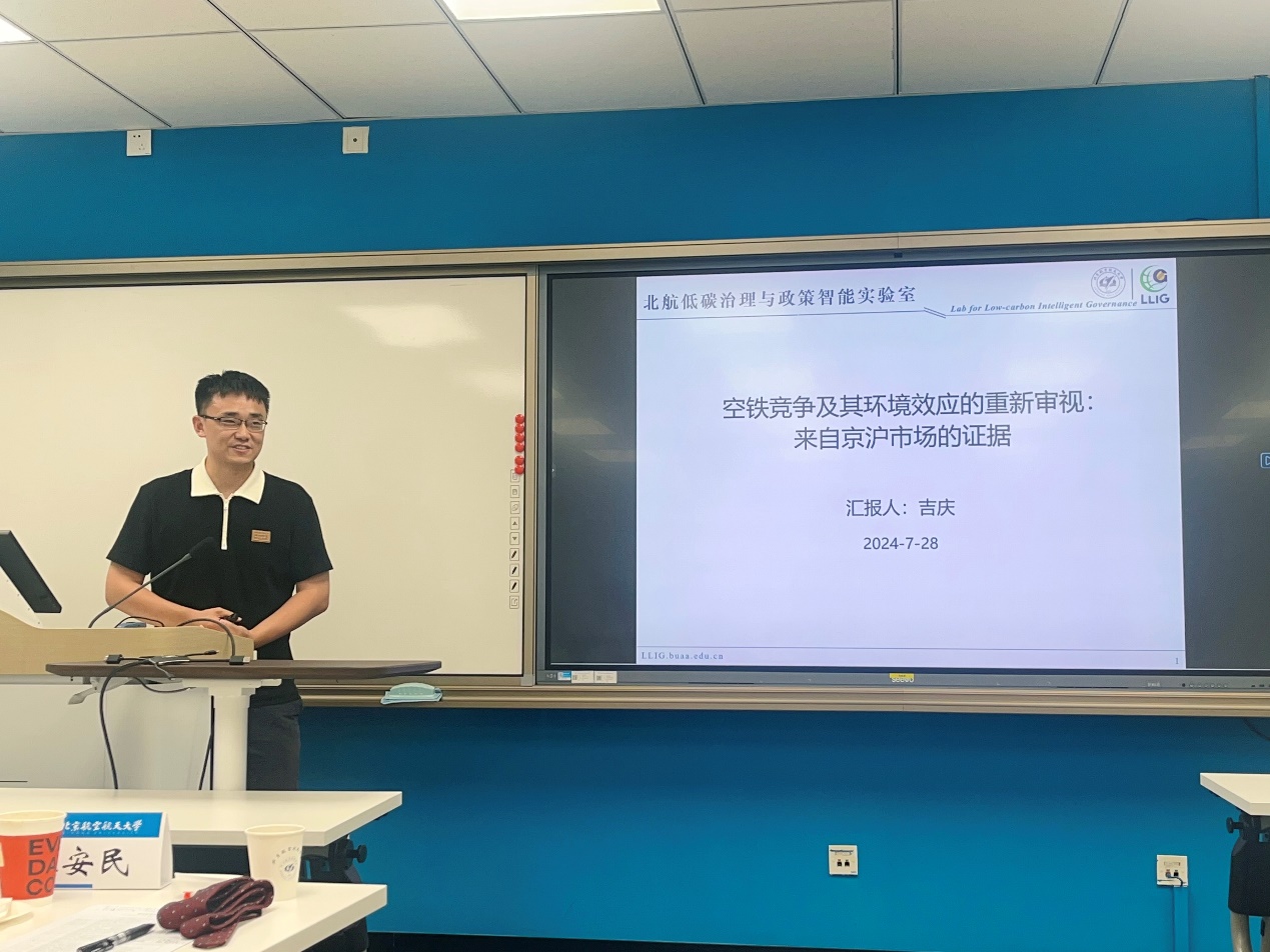 合肥工业大学汽车与交通工程学院廖维君助理教授从减污降碳协同发展,中国石油大学(北京)经济管理学院吉庆助理教授从航空高铁结构模型估计和环境影响评估,北航经管学院博士研究生周雨薇从航空公司拥挤内部化展开报告和讨论,会议全程讨论热烈。
