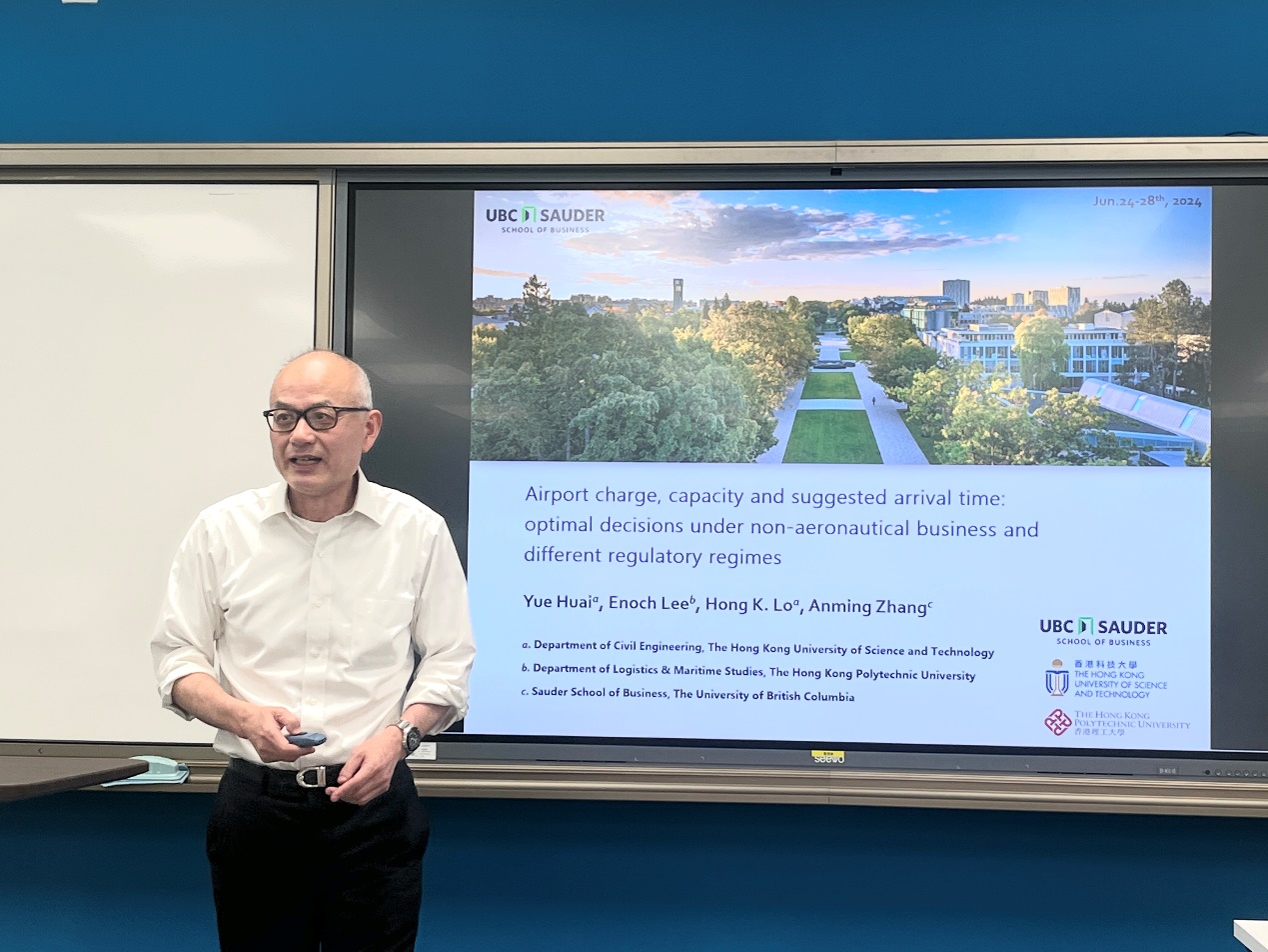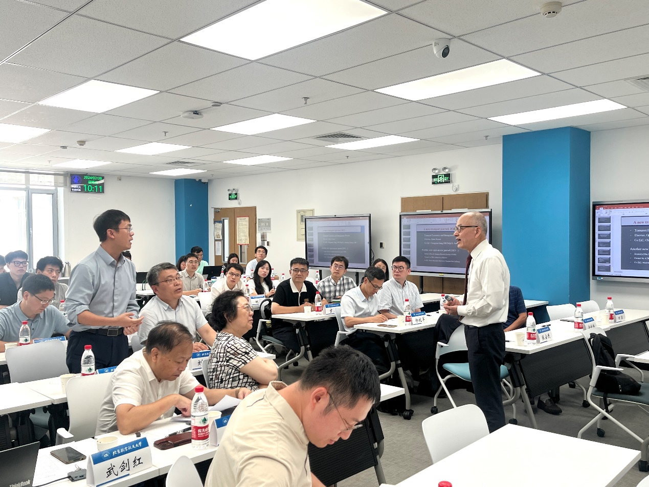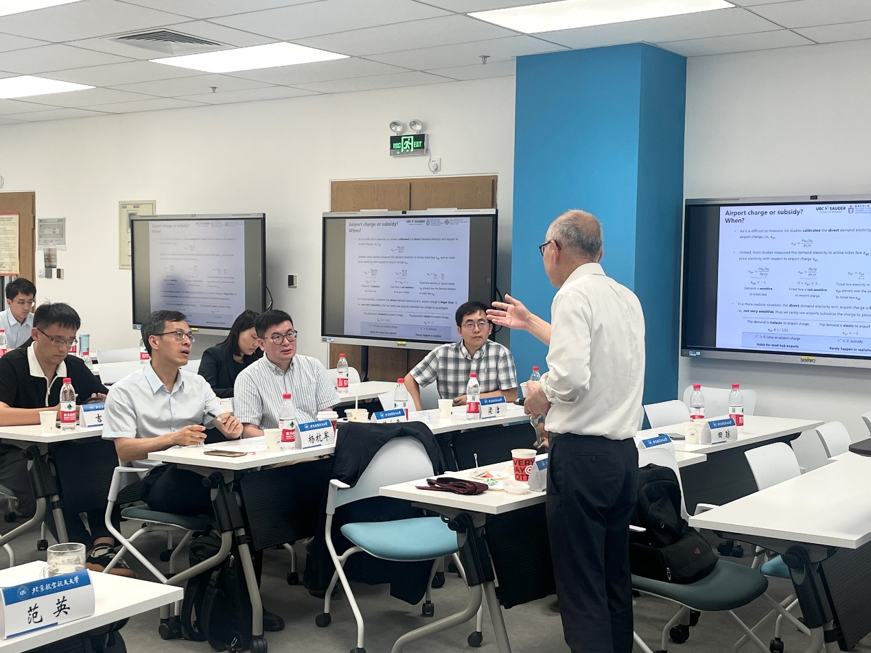 不列颠哥伦比亚大学尚德商学院、世界航空学会(ATRS)主席张安民讲席教授于上、下午分别做了关于机场连接度和韧性的航空大数据分析以及机场收费、容量和建议到达时间为主题的两场主旨报告,并与与会学者充分交流讨论。