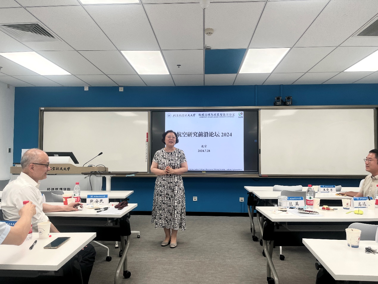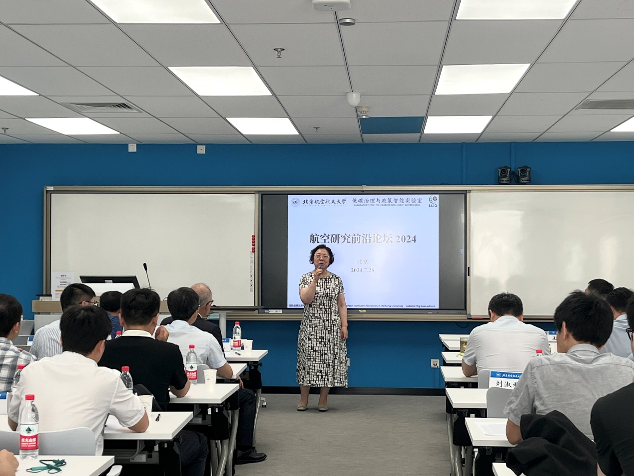 首先,北航低碳治理与政策智能实验室主任范英教授开场致词,欢迎各位专家学者齐聚北航,共同探讨航空业发展过程中的重要问题,同时介绍了实验室以航空业绿色低碳化发展为特色研究方向之一,跨学科、重交叉,在航空经济与管理的多个前沿方向不断突破。