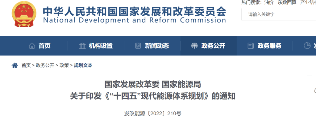 国家发改委、能源局发布《“十四五”现代能源体系规划》