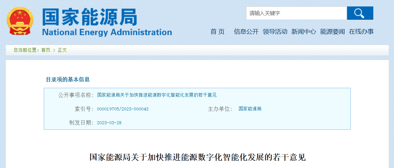 【低碳转型要闻】 国家能源局:加快推进能源数字化智能化发展