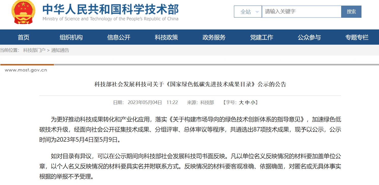 【低碳转型要闻】 科技部发布《国家绿色低碳先进技术成果目录》