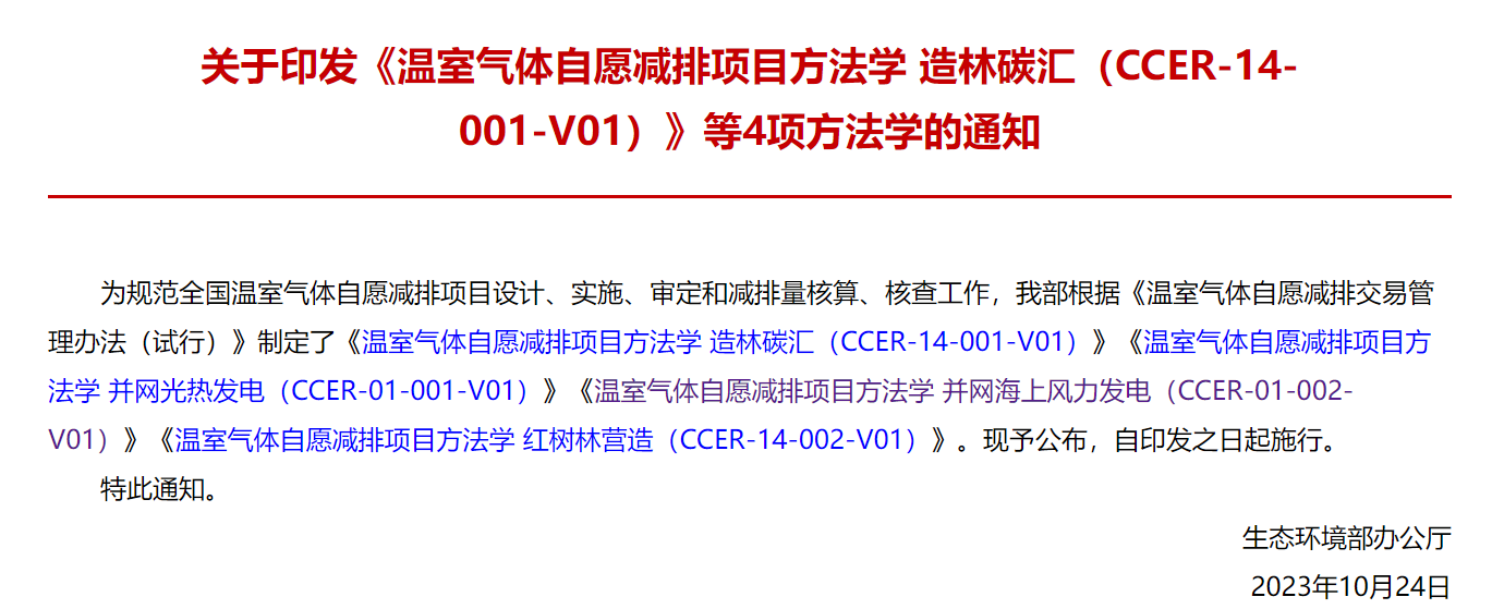 【低碳转型要闻】 生态环境部正式发布CCER首批项目方法学