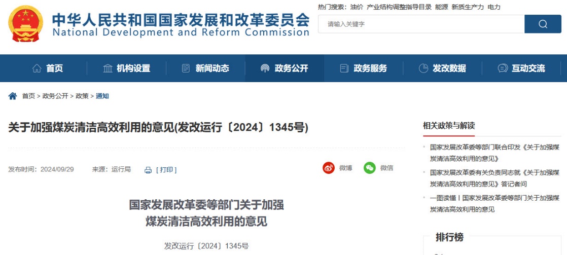 | 【低碳转型要闻】 多部门联合印发《关于加强煤炭清洁高效利用的意见》