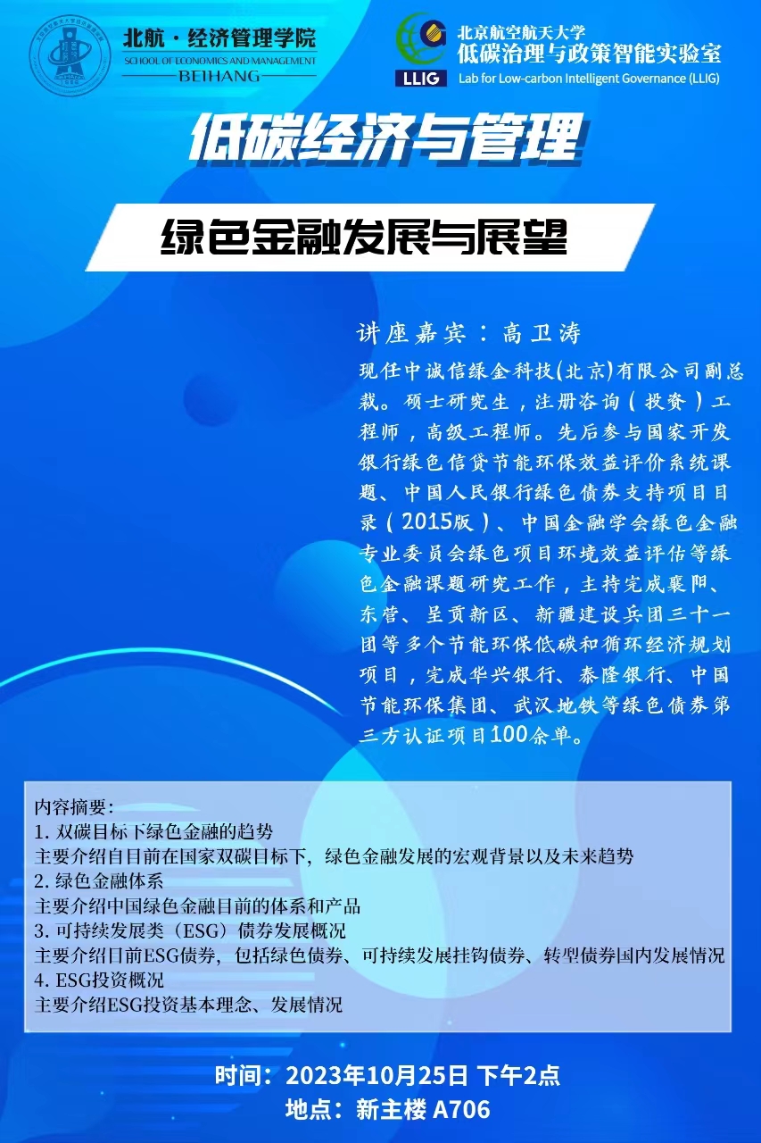 讲座预告:高卫涛 《绿色金融发展与展望》