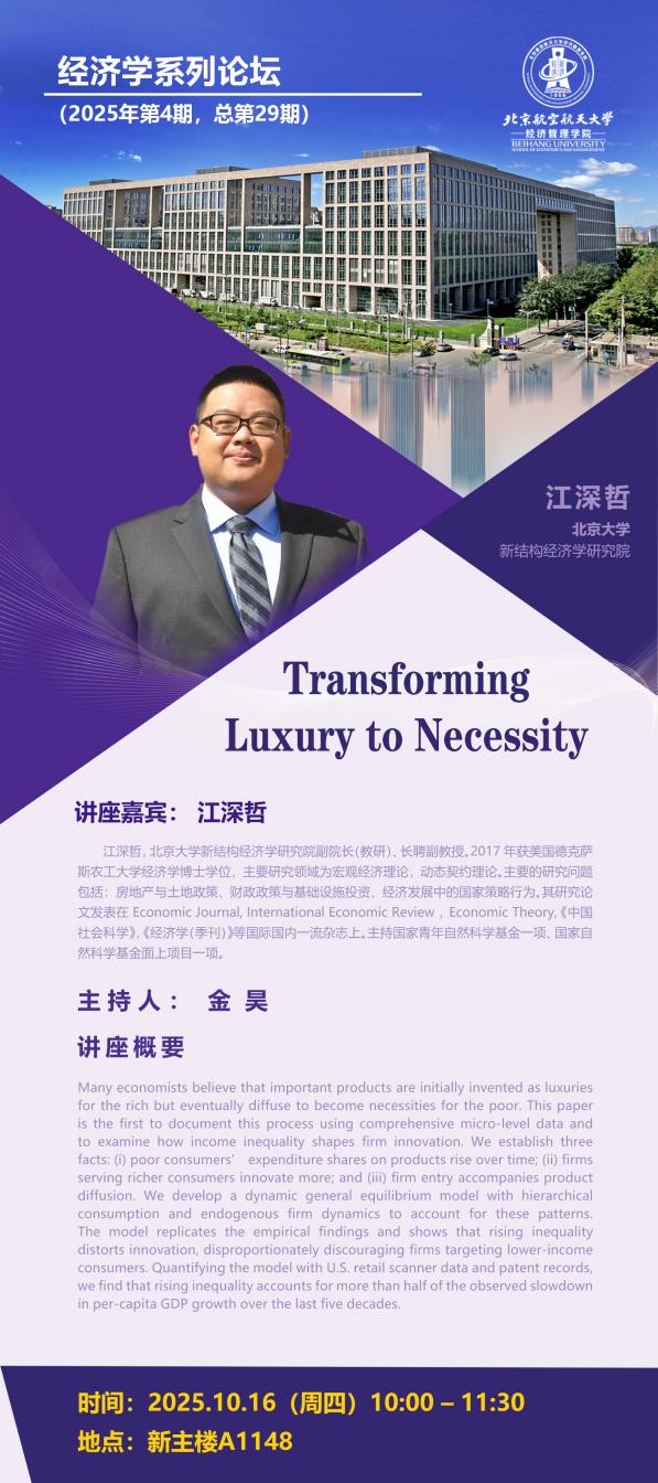 讲座预告:江深哲教授《Transforming Luxury to Necessity》