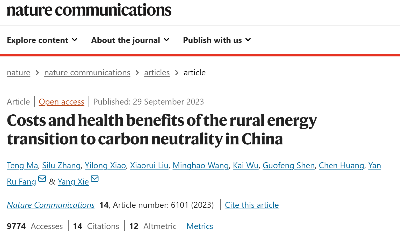 题目:中国农村现代能源转型成本有效,助力碳中和与健康改善